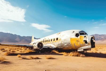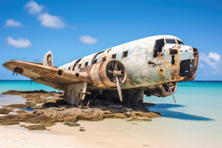 stock photo of Abandoned Aircraft in the beach photography Generated AI