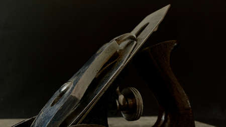 An antique jointer on the table after many years of use.ancient woodworking to.ancient human invention