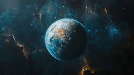 Beautiful image of Earth isolated in the dark expanse of space. Highlighting the planet's solitude and the vastness of the universe.