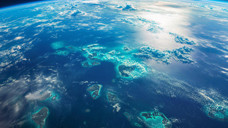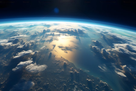 AI Generated. View of Earth from the International Space Station showcasing clouds and ocean under the sunlight during midday