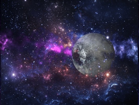 Planet Pluto in the Starry Sky of Solar System in Space.