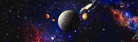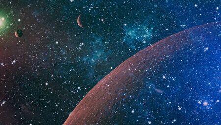 Chaotic space background. Planets, stars and galaxies in outer space showing the beauty of space exploration.