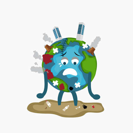 Earth globe sad sick tired of polution global warming deforestation full of dirty garbage environmental damage