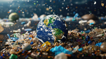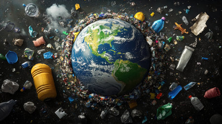 Earth covered in plastic trash, highlighting the urgent need for pollution control