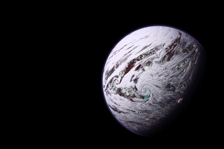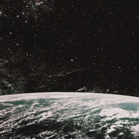 planet Earth by night in starry sky, view from space, original image furnished by NASA