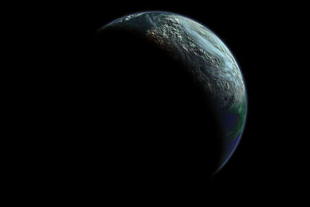 Surface of Earth planet in deep space. Outer dark space wallpaper. Night on planet with cities lights. View from orbit. Earth at he night. Civilization.