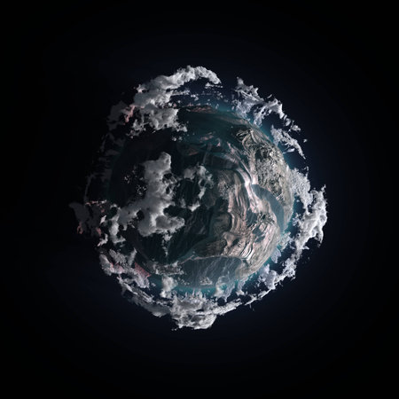 realistic exoplanet, beautiful alien planet in far space, detailed planet surface, science fiction wallpaper, cosmic landscape 3d render