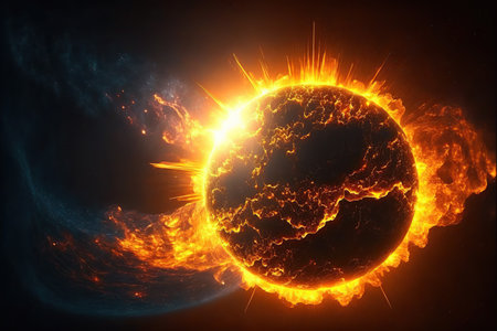Fiery Starburst Dramatic Cosmic Portrait, Revealing the Untamed Force of a Distant Sun