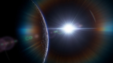 In a vast universe, a glowing celestial body illuminates an unseen landscape, creating a mesmerizing spectacle that inspires awe and wonder.