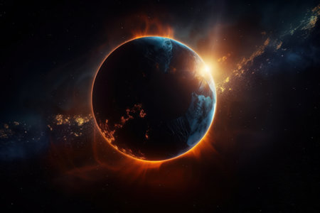 Solar eclipse of the planet Earth in the space. Elements of this image furnished by NASA