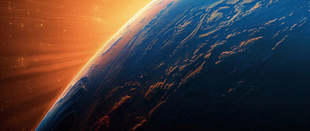 Earth planet in space with sun. Elements of this image furnished by NASA AI Generative