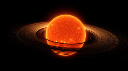 Fiery glowing planet with dynamic energy rings in space. Generative AI