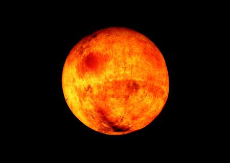 Realistic Depiction of Venus with Yellowish Hue and Surface Features Surrounded by Stars