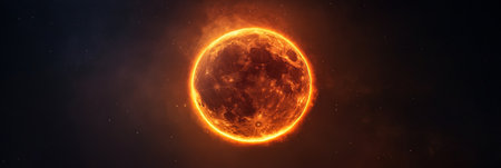 Fiery Flames on Red and Yellow Planet Isolated on a Black Copy Space Background.