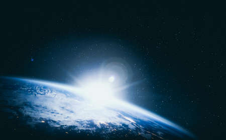 Earth from space showing sunrise 3D rendering elements of this image furnished by NASA
