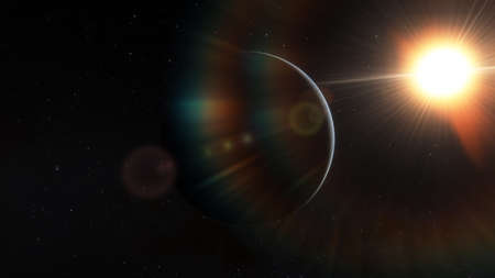 Space planet star galaxy in sunlight, space background. 3d rendering