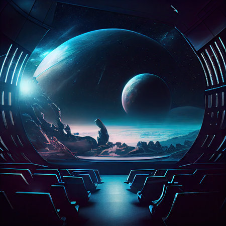 inner space of futuristic planetarium with screen and projector sci-fi futuristic interior, created with generative ai