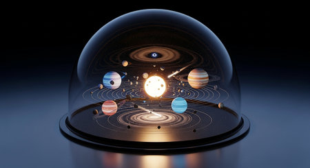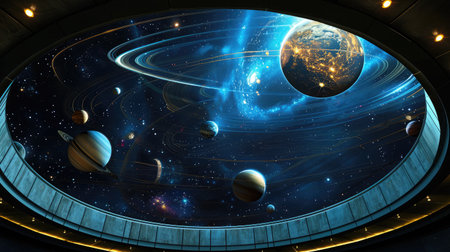 A planetarium dome featuring a dynamic display of the planets in our solar system.