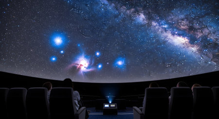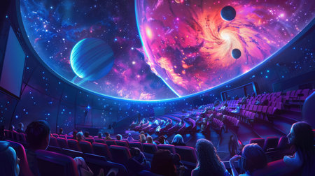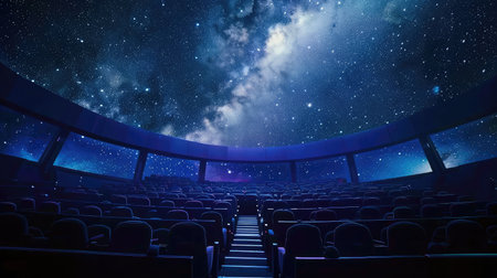 Experience the beauty of the universe from a modern planetarium theater, featuring a captivating galaxy view that inspires imagination and curiosity in astronomy enthusiasts.
