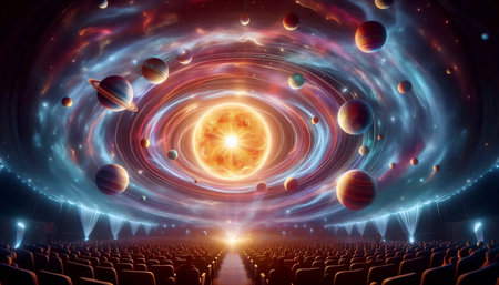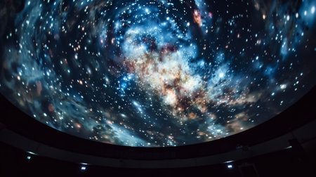 Generative AI : A spectacular fulldome digital projection of galaxy at the planetarium