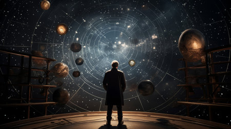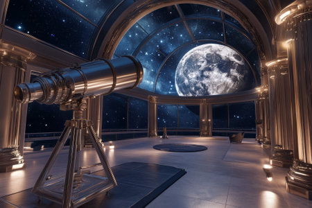 AI Generated. Astronomical Observatory Tracking the Passage of Time Through the Stars Amidst the Cosmic Landscape