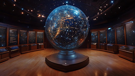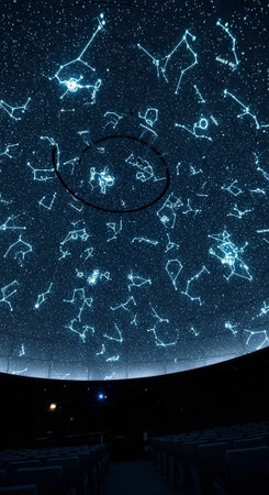 A stunning visual representation of constellations in a dark planetarium with a starry night sky