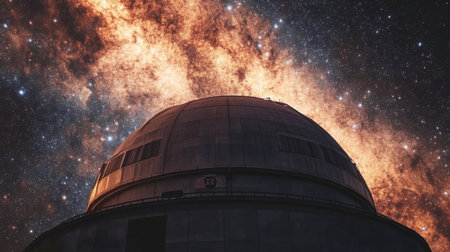 An observatory dome under a star-filled galaxy, with telescopes pointed toward the cosmos.