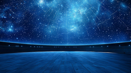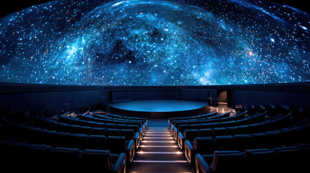 Expansive planetarium interior with starry night sky. concept of astronomy, space exploration, celestial observation, cosmic wonders.