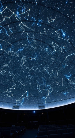 Experience the wonder of the cosmos in this empty planetarium theater, featuring a stunning starry sky projection that invites exploration and imagination.