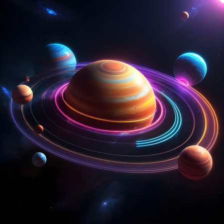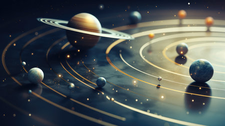 Artistic representation of a solar system model featuring vibrant planets in orbit, ideal for educational purposes, astronomy visuals, and creative explorations.