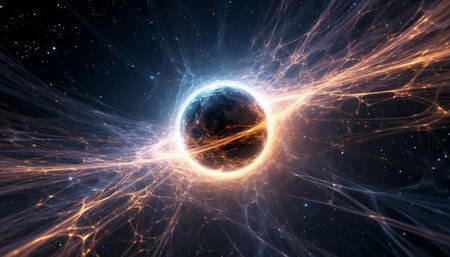 A captivating interstellar object generates ripple effects across the cosmos, against a backdrop of distant stars and bokeh light.