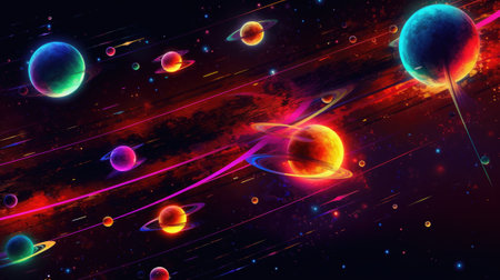 parade of planets in space in a colorful galaxy solar system generative ai.