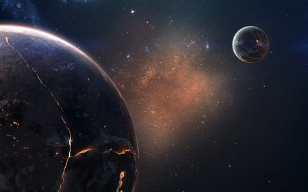 Abstract planet with huge cracks with lava in space. Elements of this image furnished by NASA.