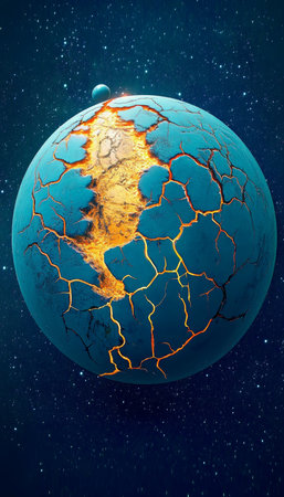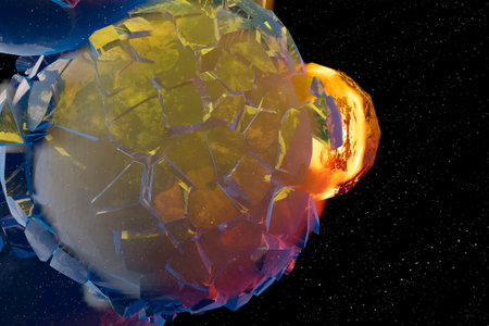 Earth fragmenting after comet impact catastrophe fragmented planet earth disaster in universe abstract 3d illustration