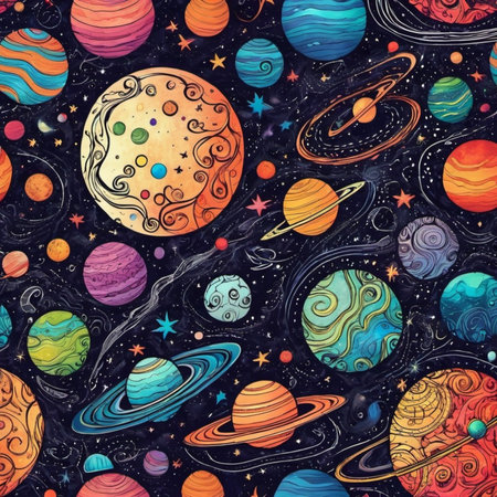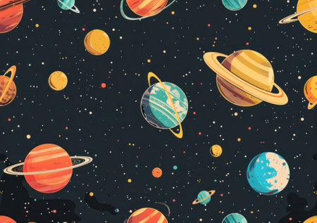 Seamless pattern of planets and saturn in outer space for travel and exploration concept illustration