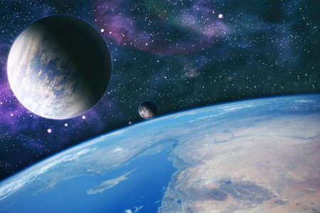 Planets with starry background, 3d rendering. Computer digital drawing.