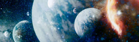 Deep space planets, awesome science fiction wallpaper, cosmic landscape.