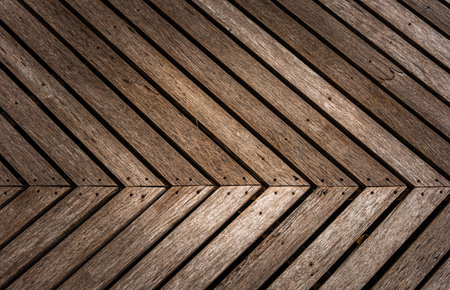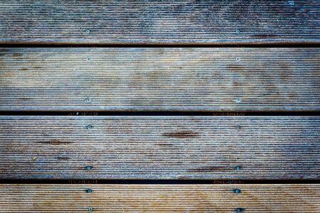Wood planks marine outside flooring from tick texture background. Wooden pattern of antique ribbed wooden planks for construction deck or indoor floor.