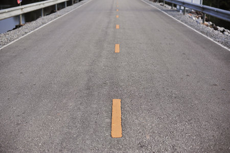 The dividing strip on the asphalt road. Beautiful landscape with blue and road in the middle. The site for the filming and promotion of products.