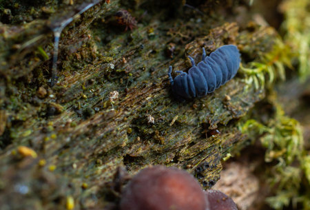 Isopod - Dairy Cow, On the bark in the deep forest, macro shot isopods.