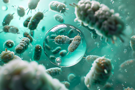 An intricate digital representation of bacteria displaying vibrant colors and glowing elements, highlighting the fascinating world of microscopic life in a stunning abstract setting.