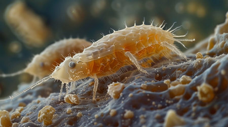 Scabies mites visible on skin surface showcase the biological details of these tiny organisms