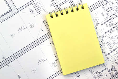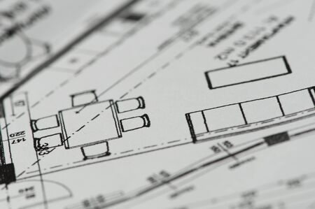 Detail of project, architecture kitchen plan on home renovation blueprint in the architecture office