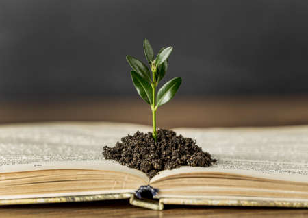 assortment with book plant ground. High quality and resolution beautiful photo concept