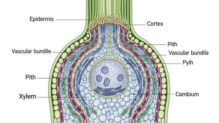 This visual representation reveals a cross-section of a plant stem, displaying the intricate structures essential for plant physiology.