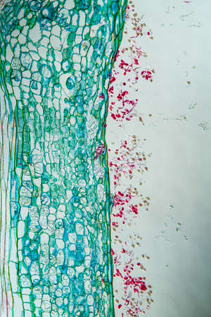 Longitudinal section of pumpkin (cucurbits) stem. Recommended sizes for printing 20x30 cm. To use as teaching material