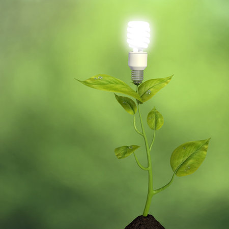 Energy Efficient Lightbulb With Small Tree - Saving Energy Development Concept - Electricity
