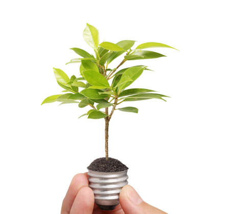 A tree growing in an energy efficient light bulb, the concept of environmentally friendly and sustainable energy options.