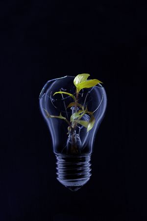 Energy sources that are renewable and sustainable. The concept of growing plants in bulbs.