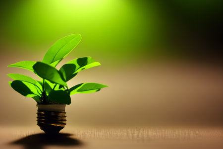 ideas for sustainability and the environment, lightbulb with perfect green V-shaped leaves growing inside of it